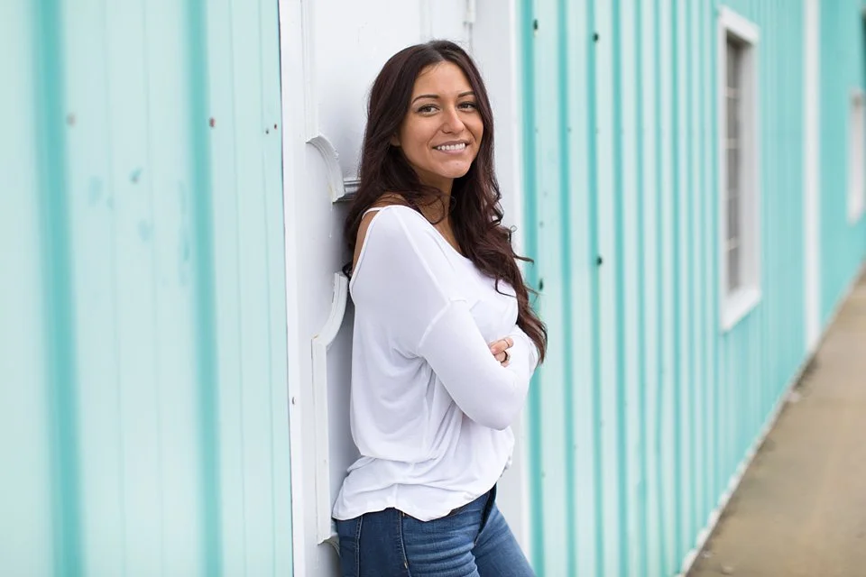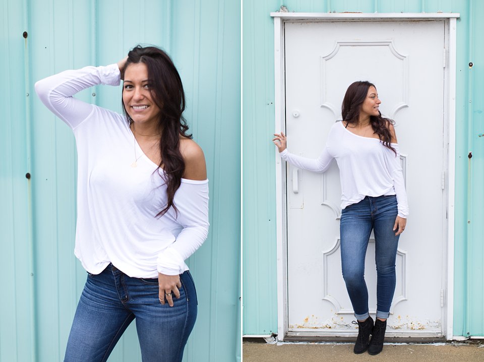 When you put a natural beauty in front of my favorite color wall, you've got a pretty fabulous photo shoot if you ask me! But the secret is... you would of never knew what this beautiful mint wall was if I didn't tell you! This is actually the side of a liquor store! (haha!!) I would drive past this place every time we went back home to visit the family and I always said "one day, I will take pictures in front of that building!" and then Brian would roll his eyes at me. Haha! So when Melissa said she wanted pictures done, and she's from this area, I knew EXACTLY where we were going!
