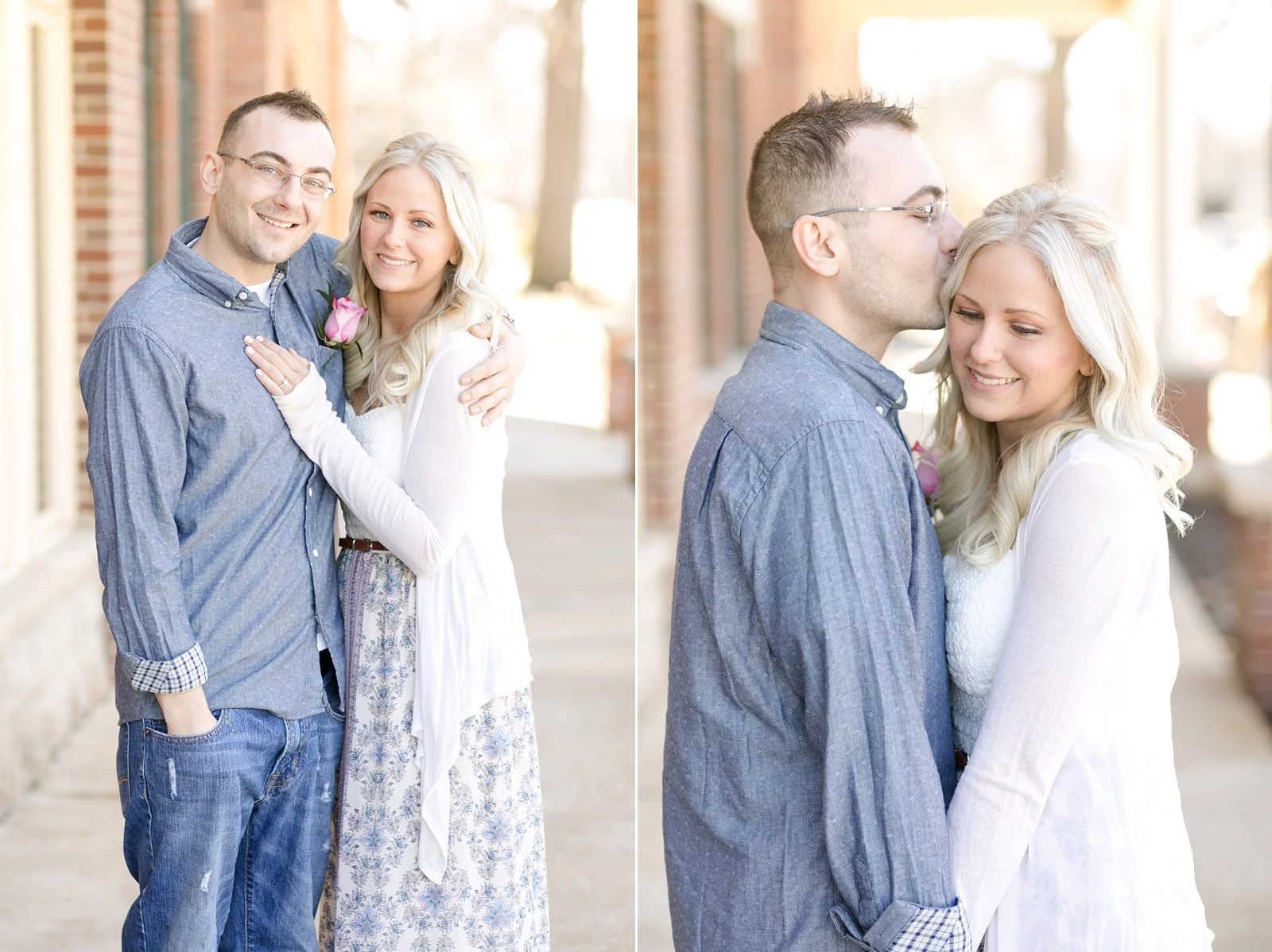This past weekend I was invited to come along and photograph Bridget and Jim's wedding shower in Downtown Frankfort! Of course I couldn't say no to the opportunity to see these two again and meet their friends and family before their wedding day!! They seriously had the most perfect day for their shower! It was warm, the sun was shining, and they picked the cutest place to host the event! Before it actually started, we snuck away to get some portraits and I am IN. LOVE! with every single one of these! Bridget and Jim have such loving and kind hearts! They were up for going to different locations and getting as many shots as we could and they made my job SO easy! Just look at them!! I can not WAIT to photograph these two in May on their WEDDING DAY!!