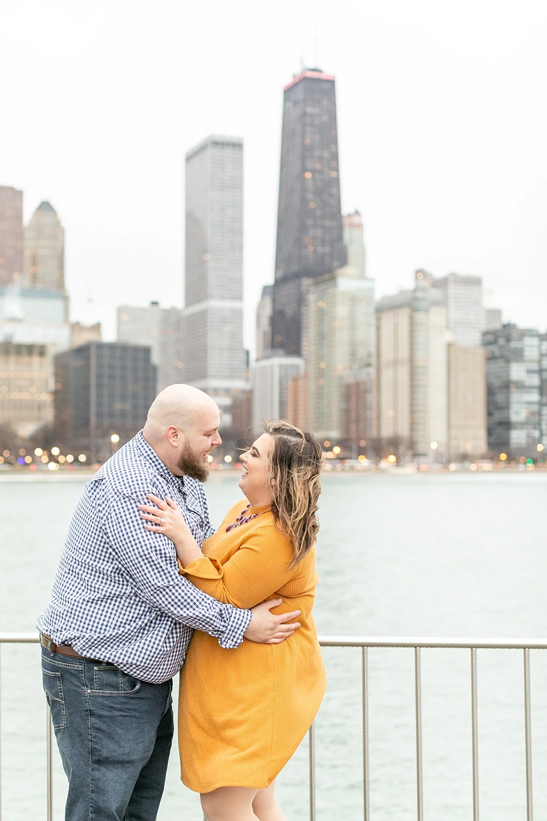 Usually when there is rain in the forecast, I would reschedule a shoot but when I brought up the idea of bringing my clear umbrellas, Megan was ALL FOR having a rainy engagement session! Megan and Tom wanted to do their shoot at Navy Pier because this is actually where he proposed to her on their dating anniversary! When there is significance in a special location for a couple, I always encourage picking that for your shoot because it will make these photos that much more special for them!
