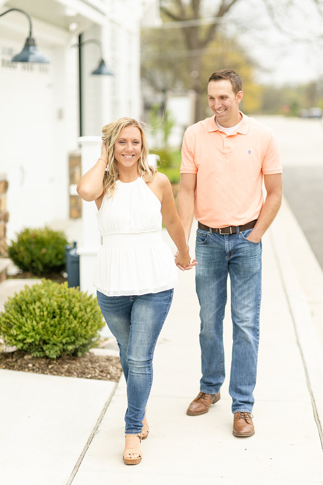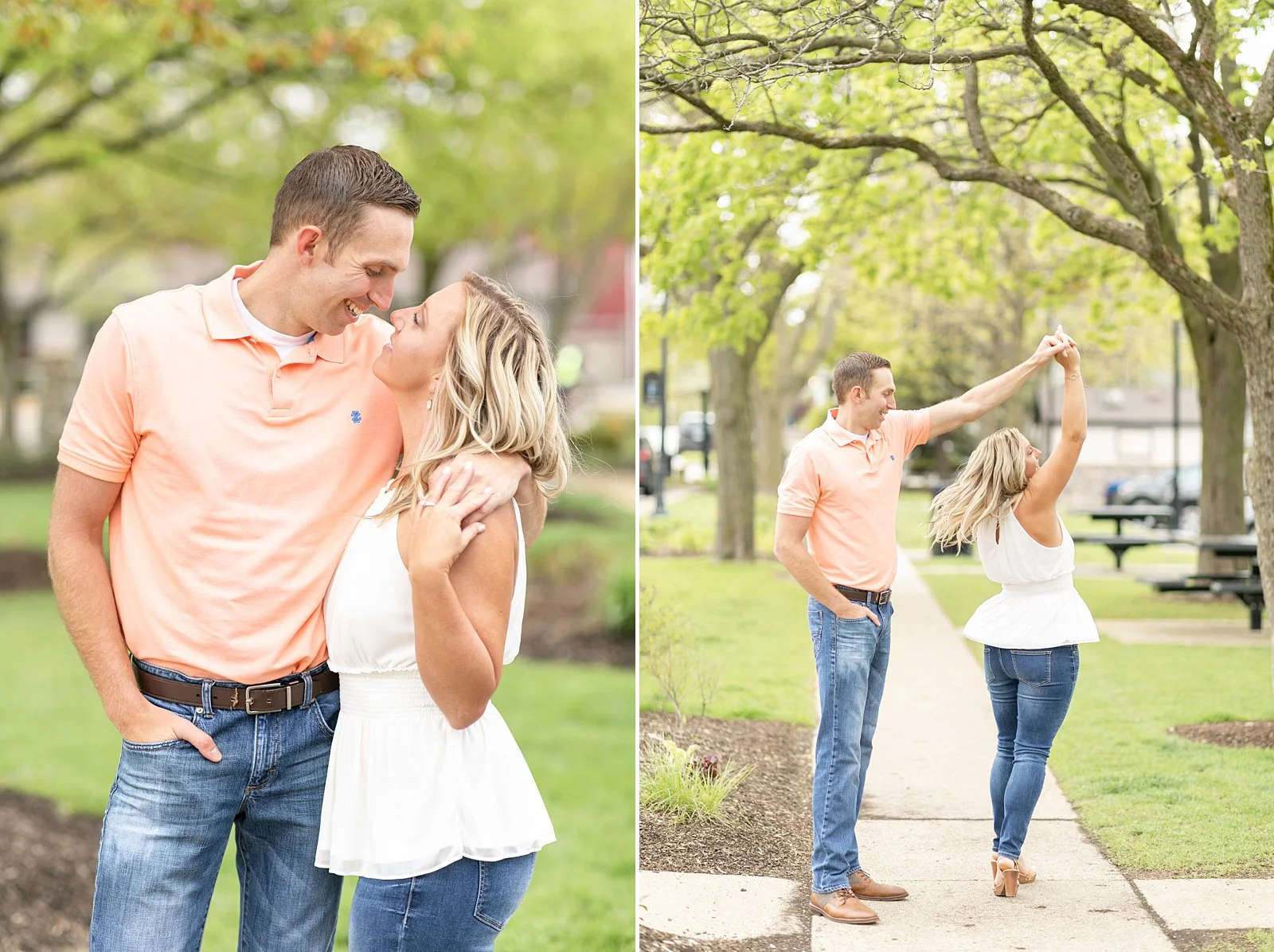Here we are, now have just photographed their ENGAGEMENT session and we are less than a year away from their spring wedding day next April! They are planning a beautiful blush, navy and gray wedding in their hometown (also MY hometown! yay!) and then hosting the celebration at the amazing Tuscany Falls in Mokena, IL! I am so incredibly honored and thankful that I get to serve these two amazing people as they commit to each other forever! I can not WAIT to capture it all for them and know it’s going to be so joyful!! Until then, please enjoy some of my favorites (some are a favorite of all time!!) from Kaycie and Brad’s engagement session in Downtown Frankfort!