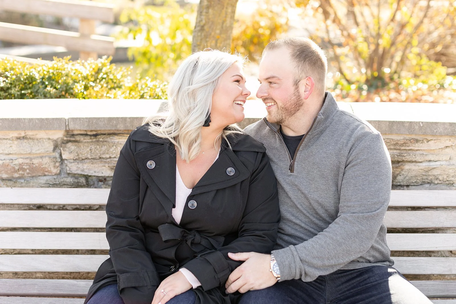 The Naperville Riverwalk sure was showing off it’s beautiful fall colors this day! Even though it looks glowy and warm, it was COLD! Jackets and sweaters were definitely necessary but these two were rockstars!! Also, let me just mention how much I love Alexa’s style! Her classic black coat with those tassel earrings! LOVE! This might just be my new favorite fall engagement session!