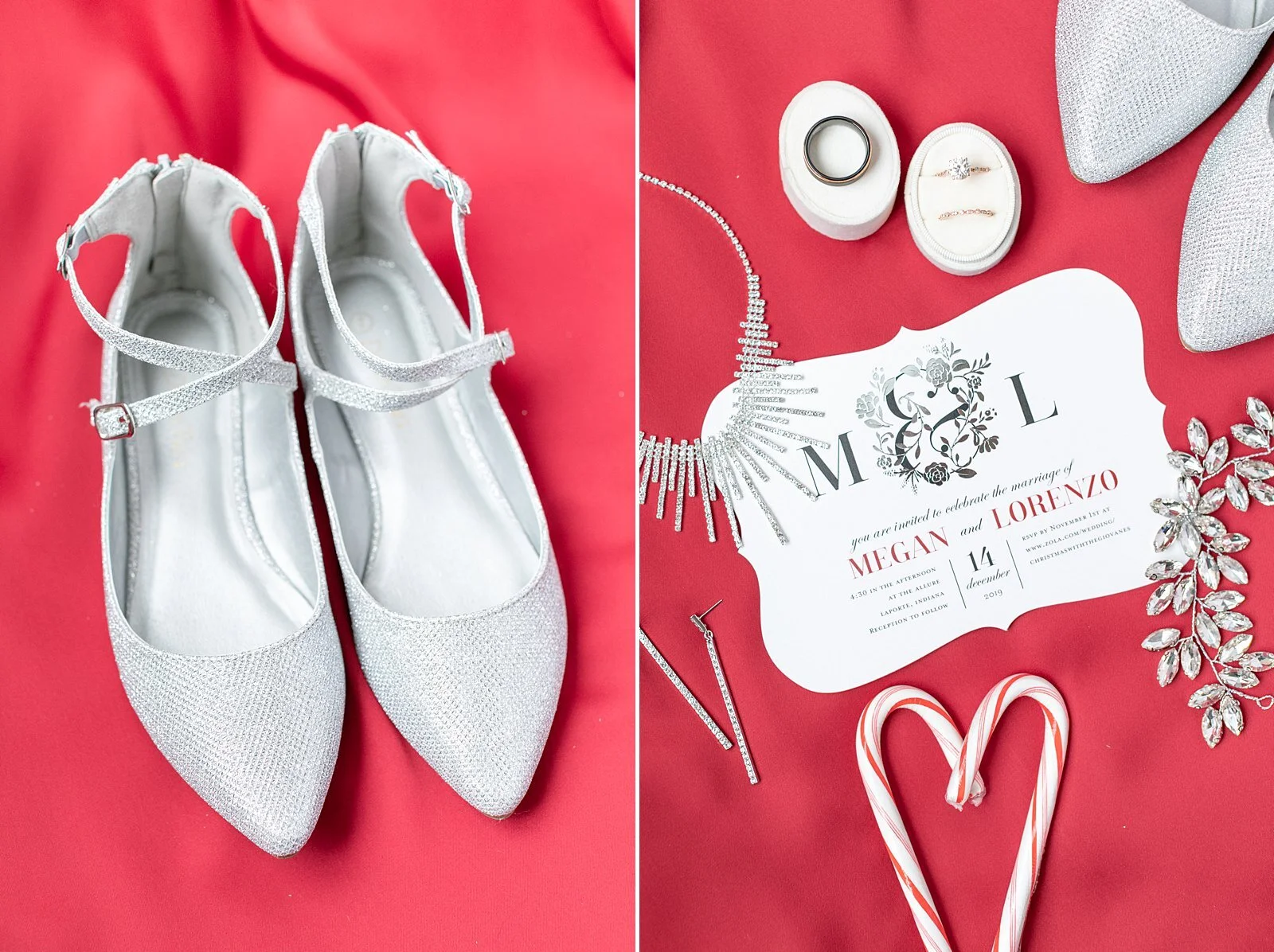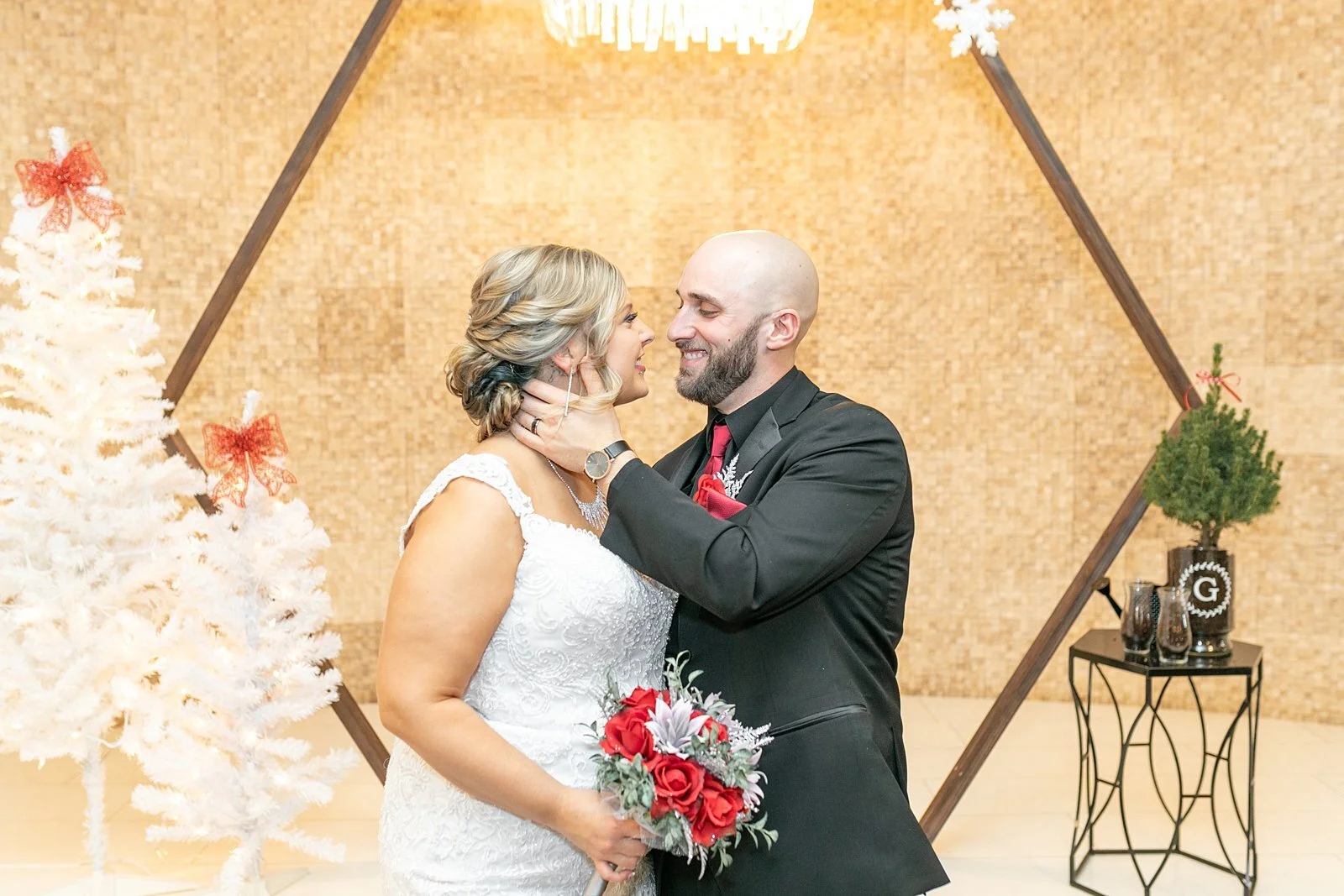 I remember back when we did Megan and Lorenzo’s engagement session (in the middle of a blizzard I might add!) , I just remember them telling me all about their visions and dreams for their winter holiday wedding day! She wanted pops of Christmas red, white pearls, snowflakes everywhere, and when I walked into The Allure on their wedding day, I felt like I just walked into a Christmas wonderland! It was SO magical! Every where you look, around every corner, on every ledge or table, there was a special detail placed there intentionally! These two thought of absolutely everything and their guests were just raving about it all!