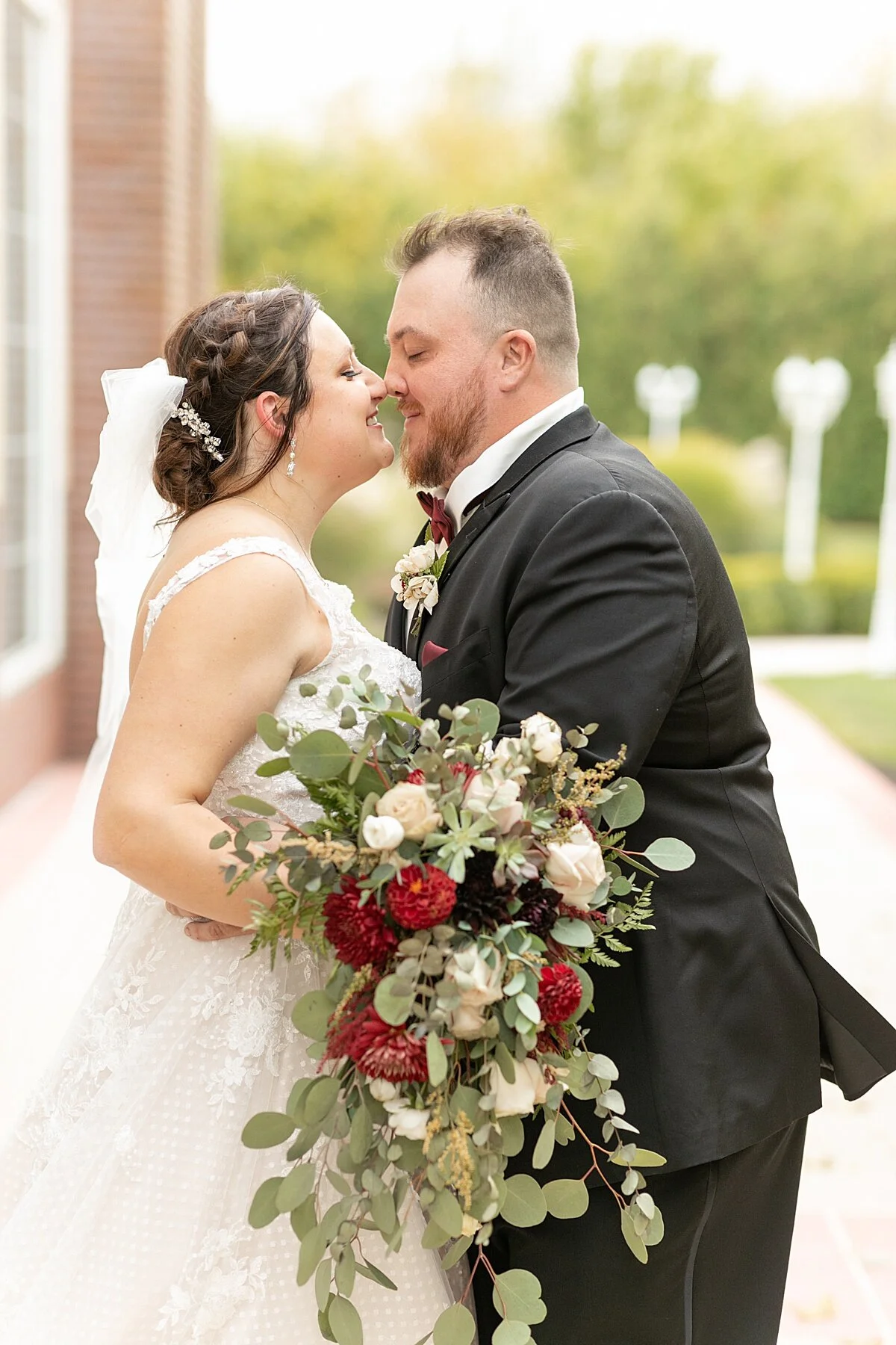 This was my 3rd time photographing a wedding day at Avalon Manor and it was so fun to find new photo spots around the venue! (especially to fit all 26 of them in the bridal party photos!) I was so happy to see little peaks of color in the trees to bring out the gorgeous burgundy color palette and “fall vibe” that these two had envisioned! The ceremony was held outside at the gazebo area which was so nice! Any outdoor wedding is a YES for me!