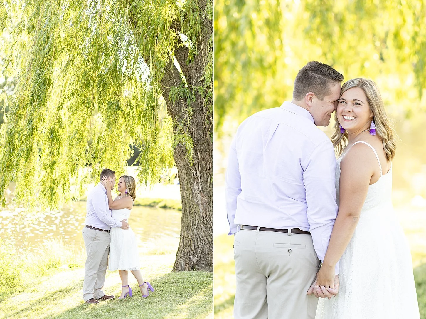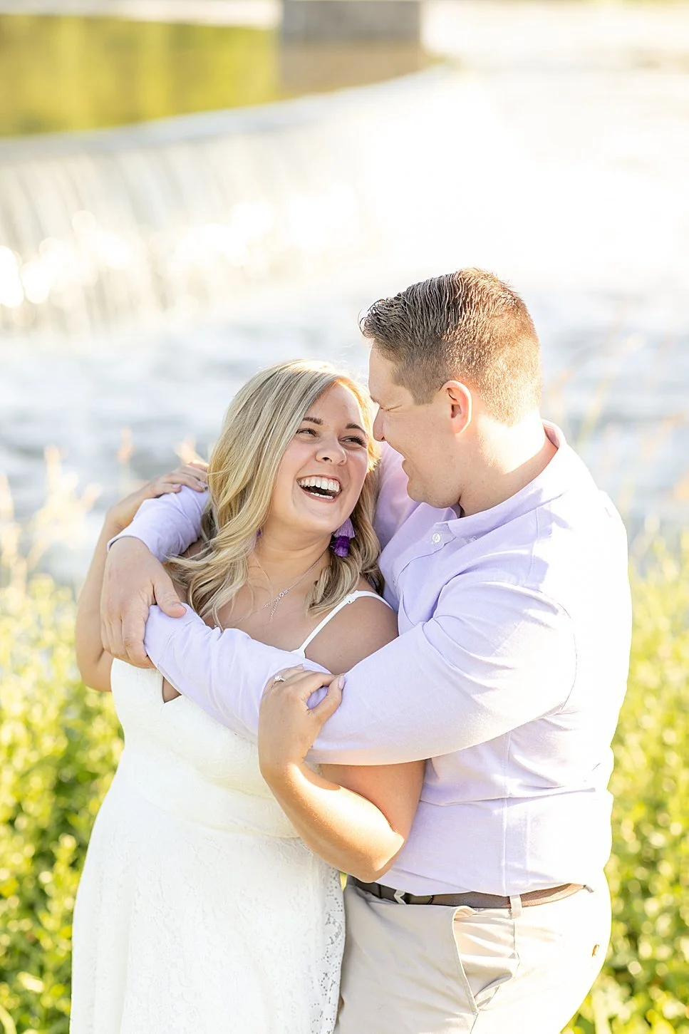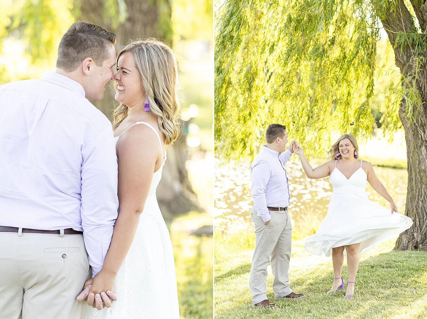 We finally get to Worth Waterfalls (which is a new-to-me place and I definitely want to come back, it’s so pretty!!), and I spotted them from across the park walking towards me. My first thought was “Omgsh they look like they are walking off of a movie set!” They totally nailed their outfits!! Amanda has a HUGE love for the color purple and incorporating that in her tassel earrings and heels was SUCH a fun touch! Nick was even tied in perfectly with a light purple button up! They looked awesome! And their smiles just lit up the park and I instantly felt warmly welcomed and like I knew them forever already!