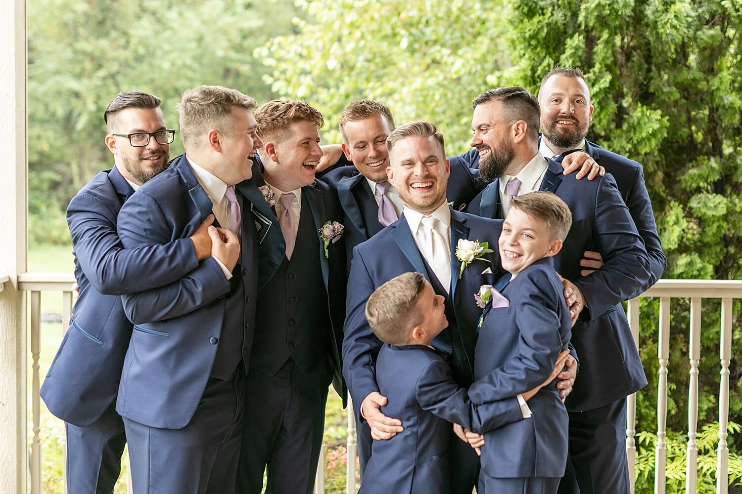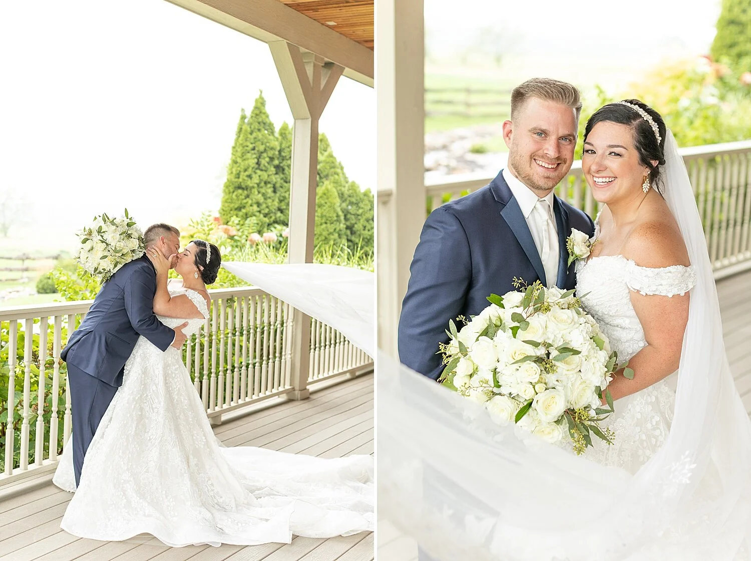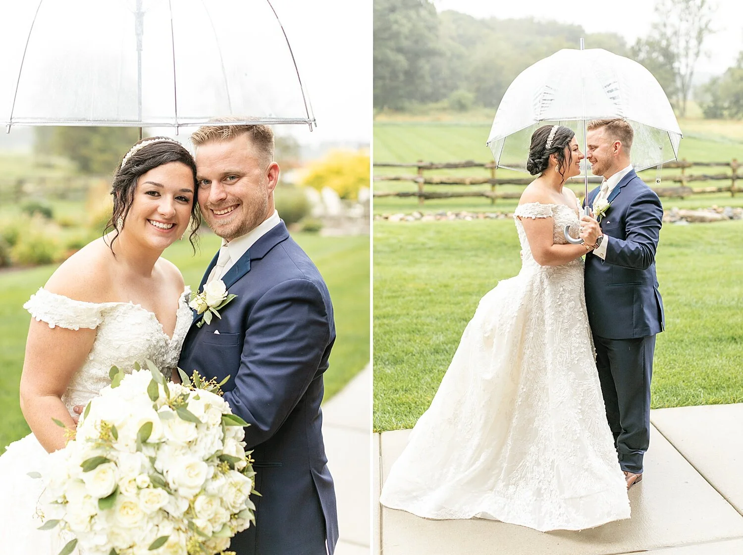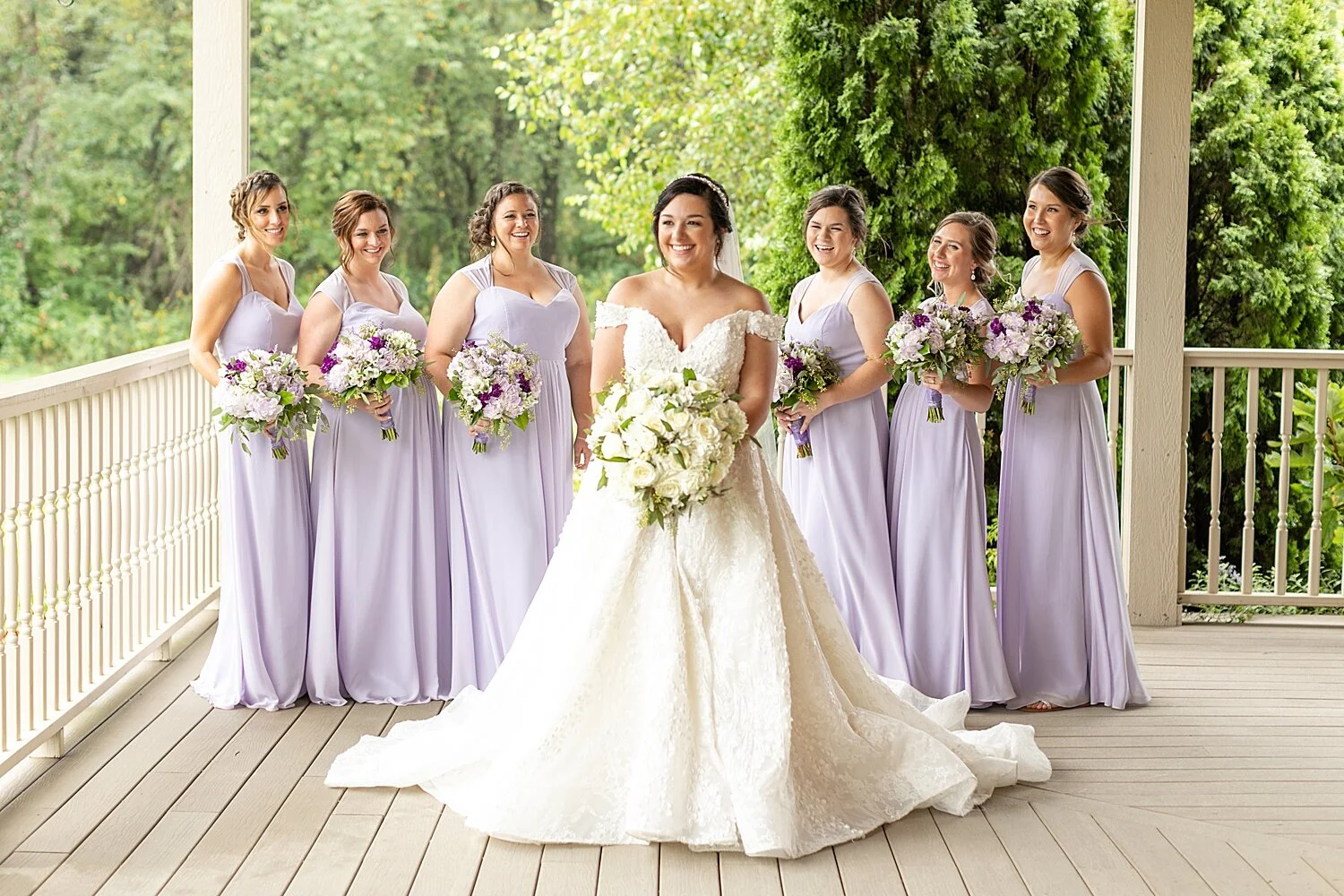 The sound of the rain pouring on the roof of the wrap around porch, the slight breeze blowing through, the crispness in the air- all made the perfect and cozy setting for Alyssa and Ethan’s wedding day. One of the biggest fears when planning a wedding (besides dealing with a global pandemic, yikes!!) is the idea of rain ruining your day. It makes things a little difficult, especially your photos! BUT, I think the rain was in our favor on this chilly Saturday! Sure, we couldn’t do much outside (except when there was a 3 minute clearing JUST in time for the full wedding party photos!) but we made the most of it and let me just say, I was FOREVER grateful for the wrap around porch that Fair Oaks Farms has around their venue! We did almost all of their portraits on different parts of the porch and I am IN LOVE with how they turned out! A few people even commented that the sound of the rain while we were taking photos made the setting so cozy and relaxing! I couldn’t agree more! It was beautiful!