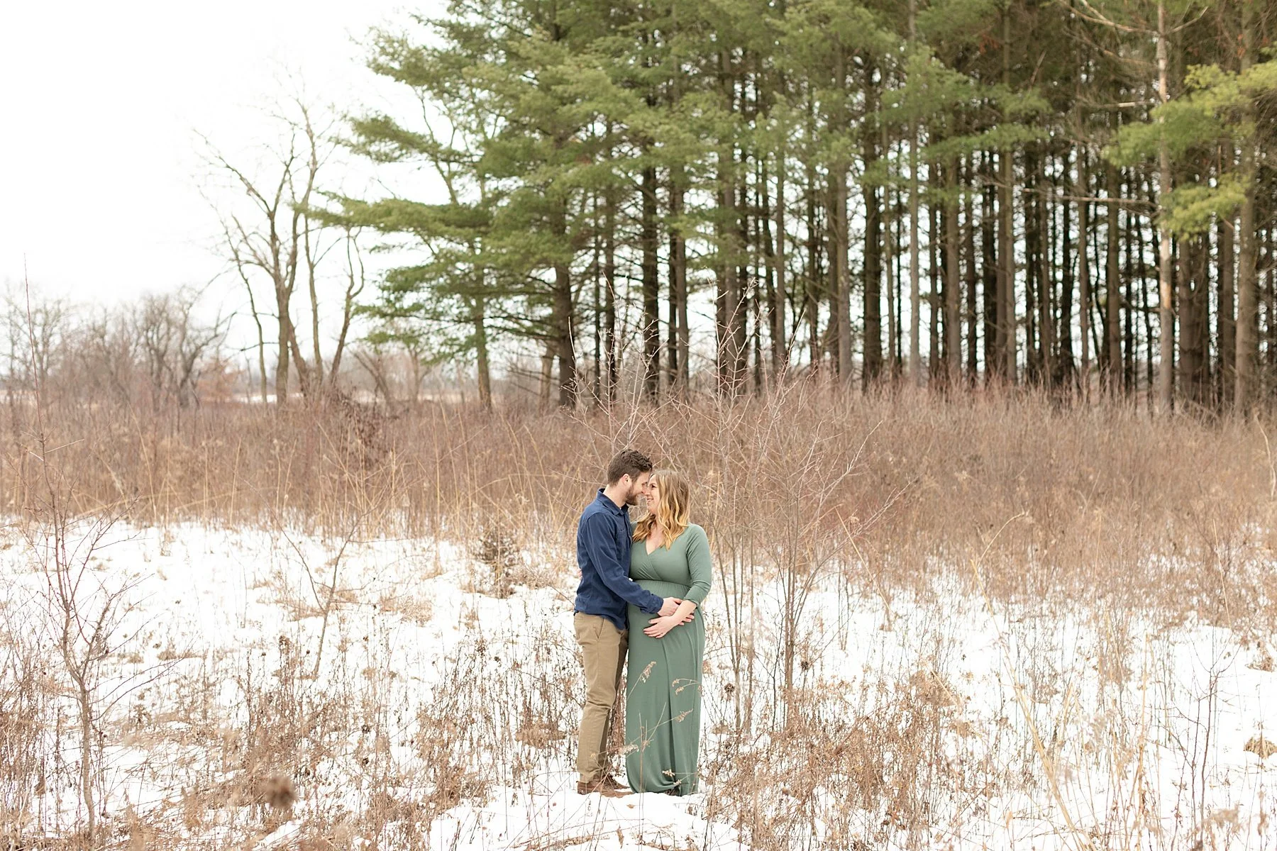This session took place in mid JANUARY! It was C O L D but Tori & Alex weren’t phased one bit! Her due date is in mid March so she was hoping to have a dreamy maternity session with snow on the ground! We just missed a few big snow storms but I was SO excited to have a little dusting on the ground still (and we even captured some of my FAVS that include the snow! I was so grateful that we were able to give Tori her snow pictures! Just wait till you see them!)